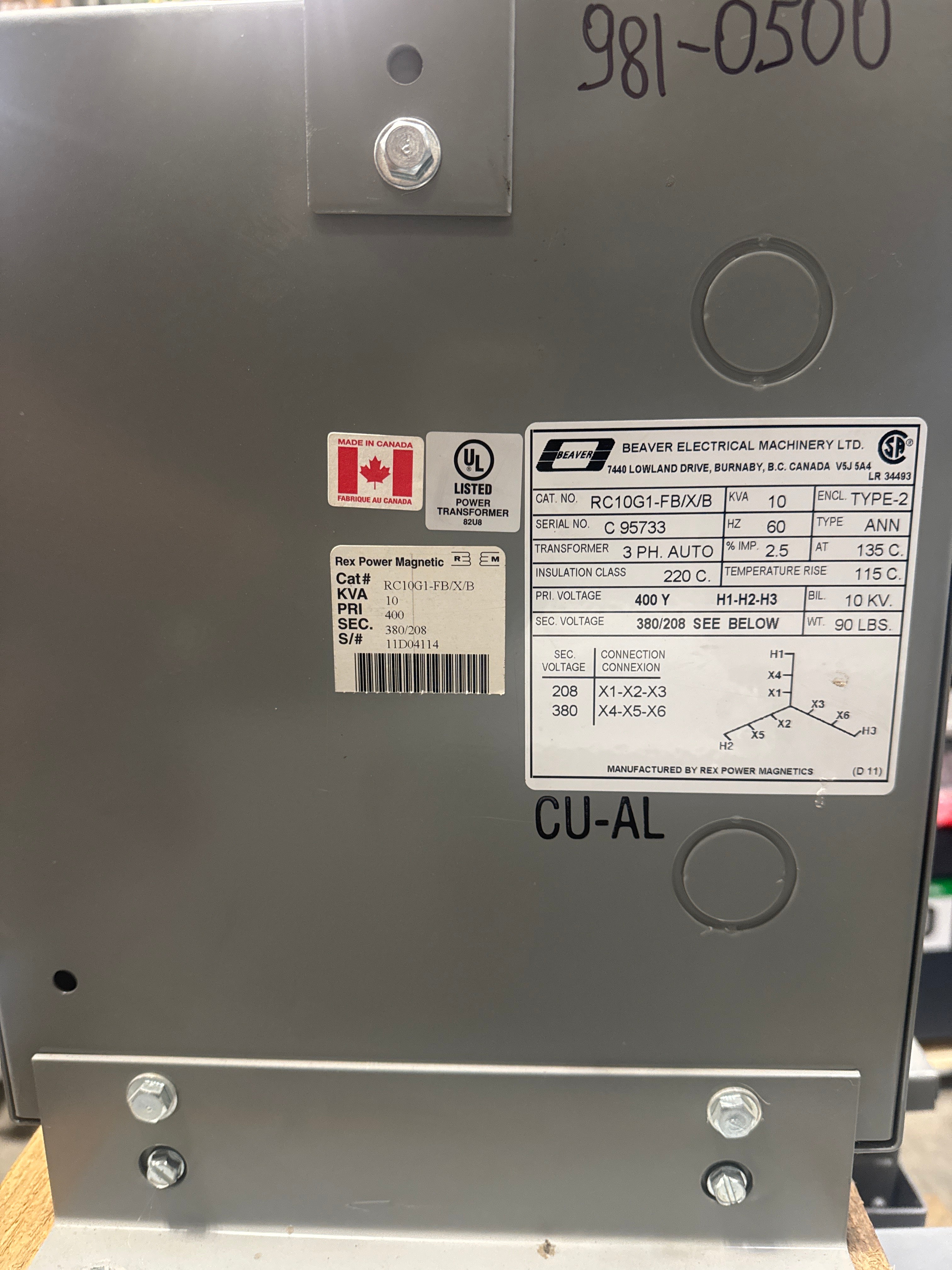 10 KVA - 400V to 380/208V 3 Phase Auto-transformer