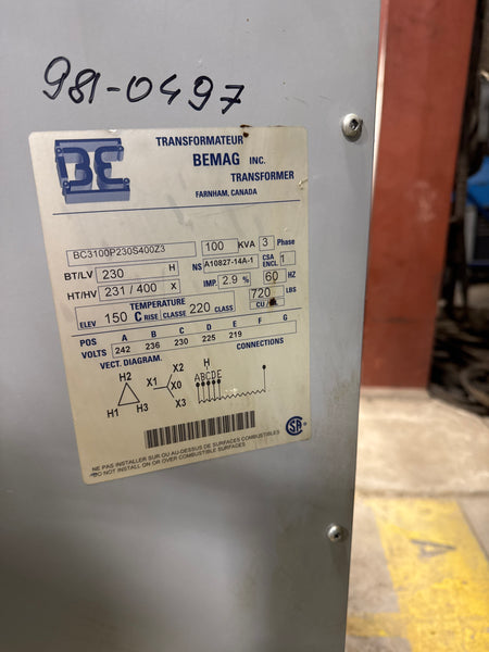 100 KVA - 230V to 231/400V 3 Phase Isolation transformer