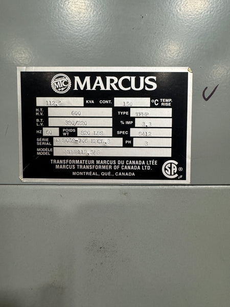 112.5 KVA 600 to 380/220 V Isolation Transformer
