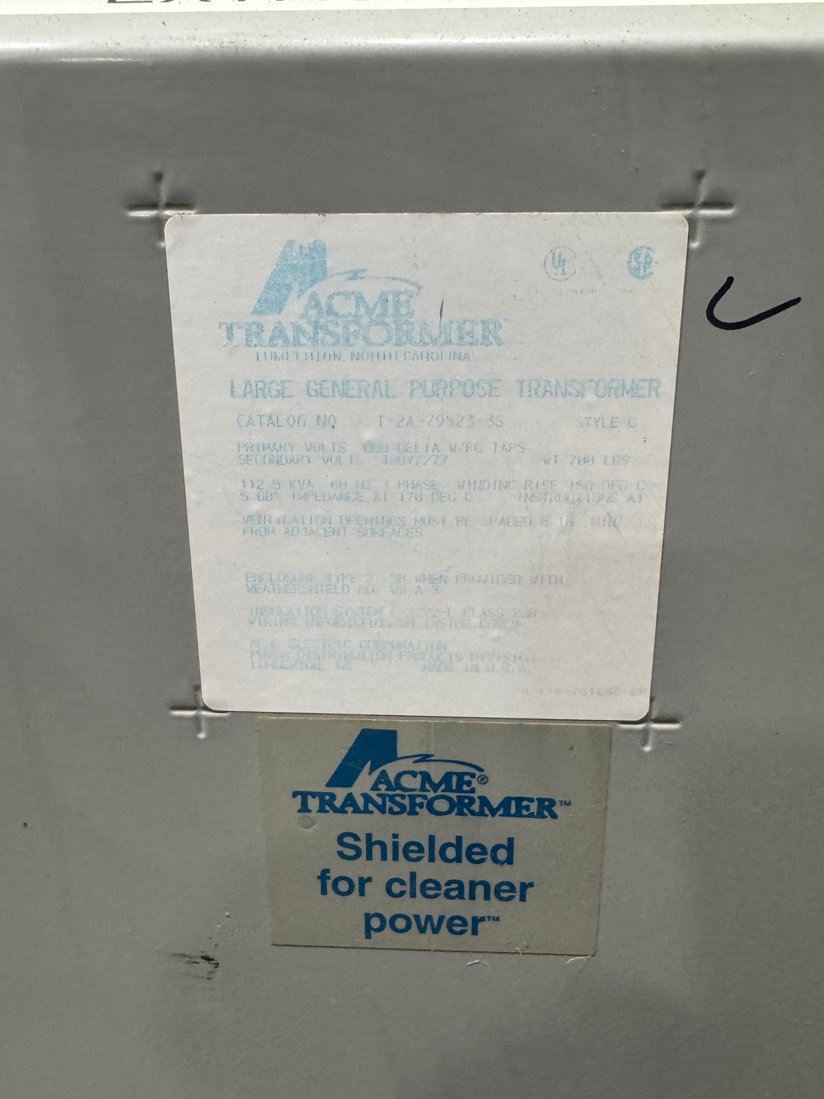 112.5 KVA 600v to 480/277Y Isolation Multi-tap Transformer