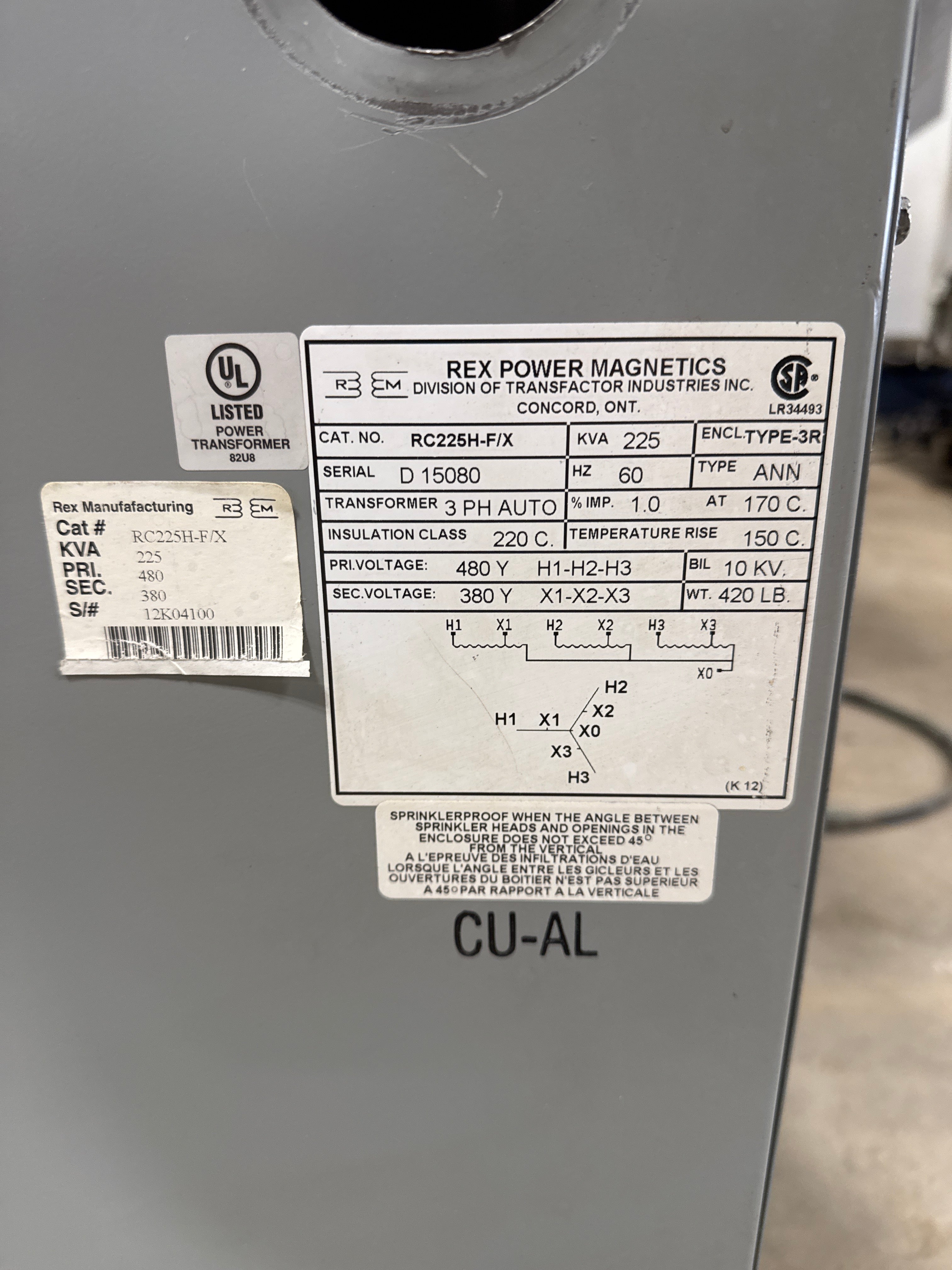 225 KVA 480V to 380V Auto Transformer