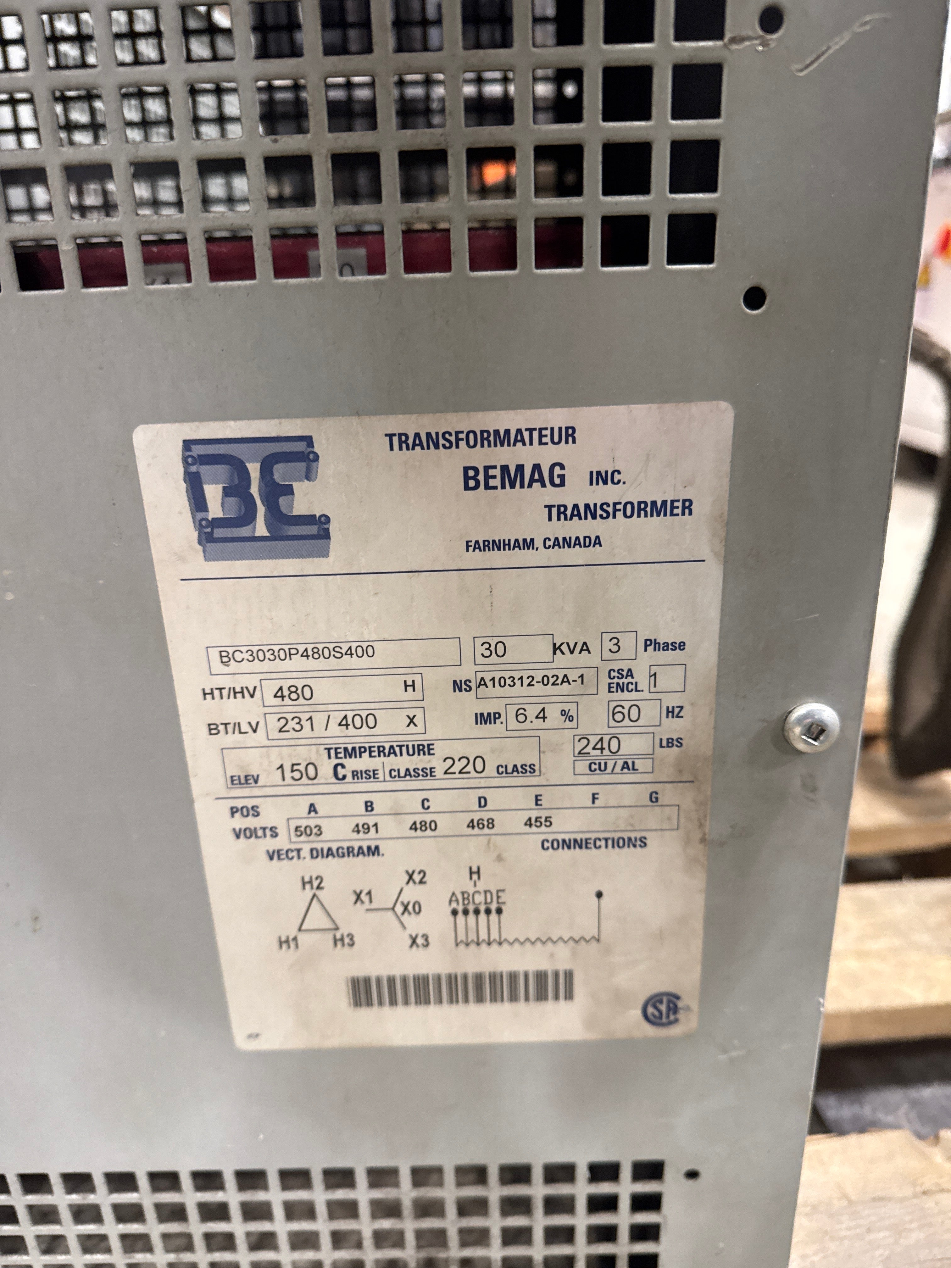 30 KVA - 480V to 231/400V 3 Phase Isolated Transformer