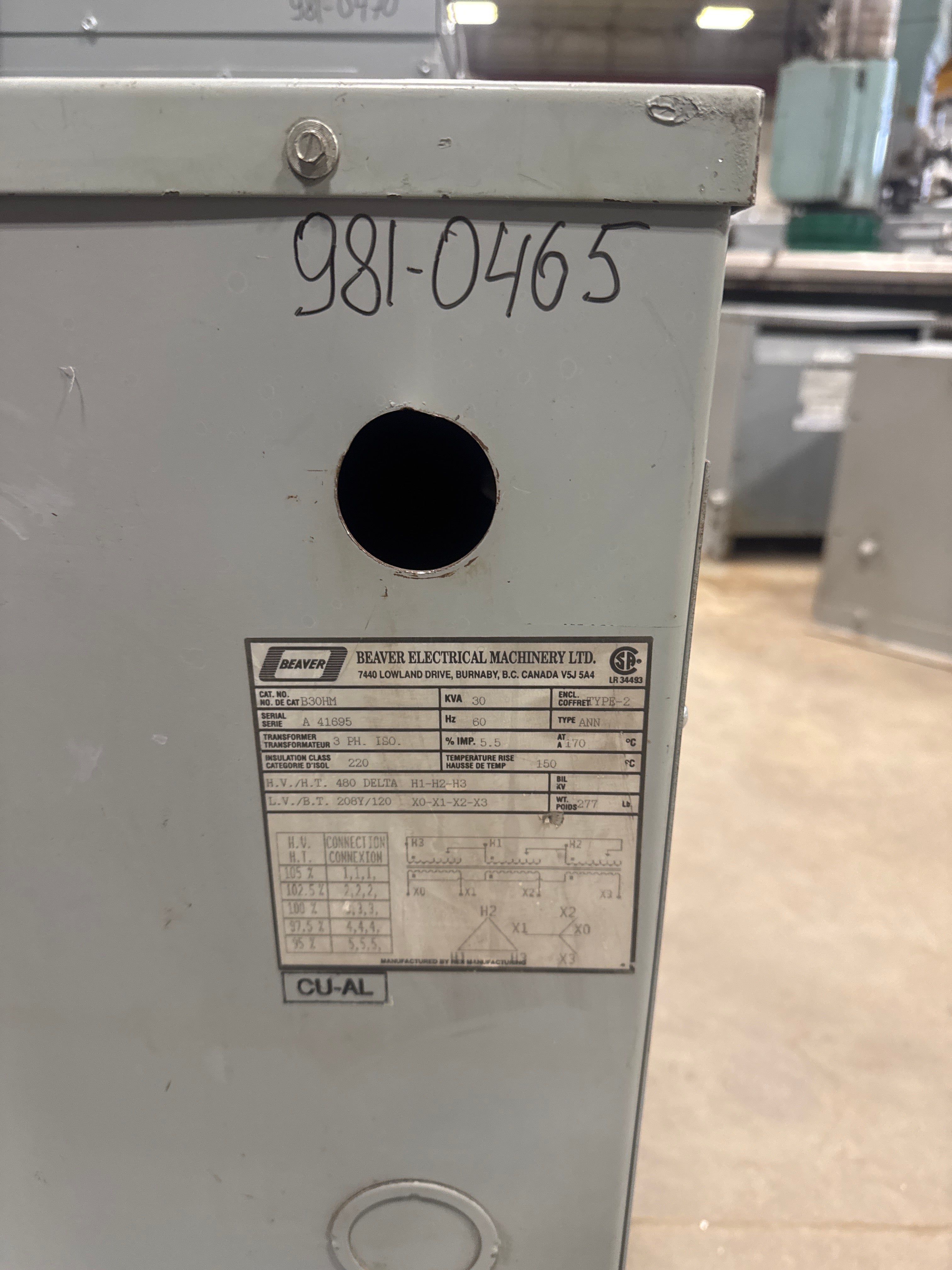 30 KVA 480Vto 208Y/120V Isolation Transformer