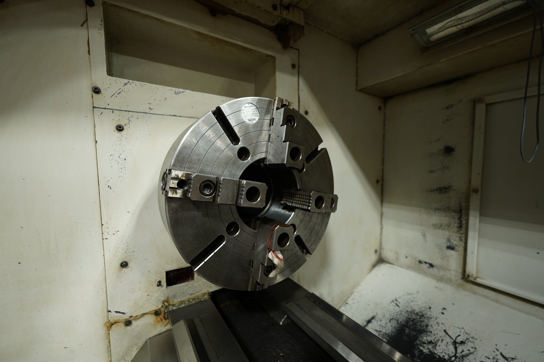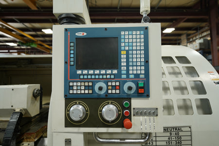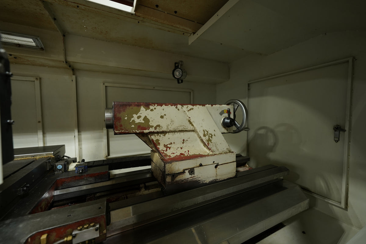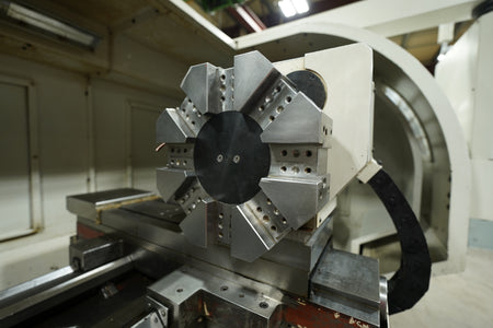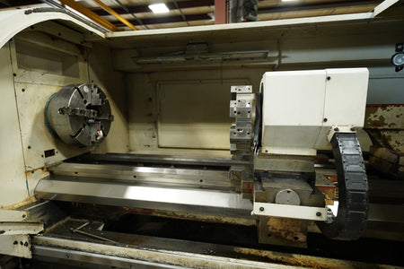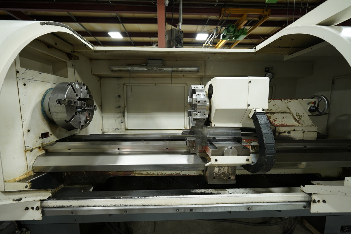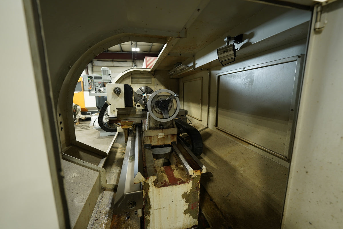 The Modern TNC 670 x 2000 CNC Lathe delivers powerful performance with a 26" swing, 80" between centers, and a large 6.25" spindle bore. Controlled via Fagor 8055 TC, this machine features a 31 HP spindle motor, chip conveyor, AC servo motors, and auto lubrication—ideal for heavy-duty turning applications.