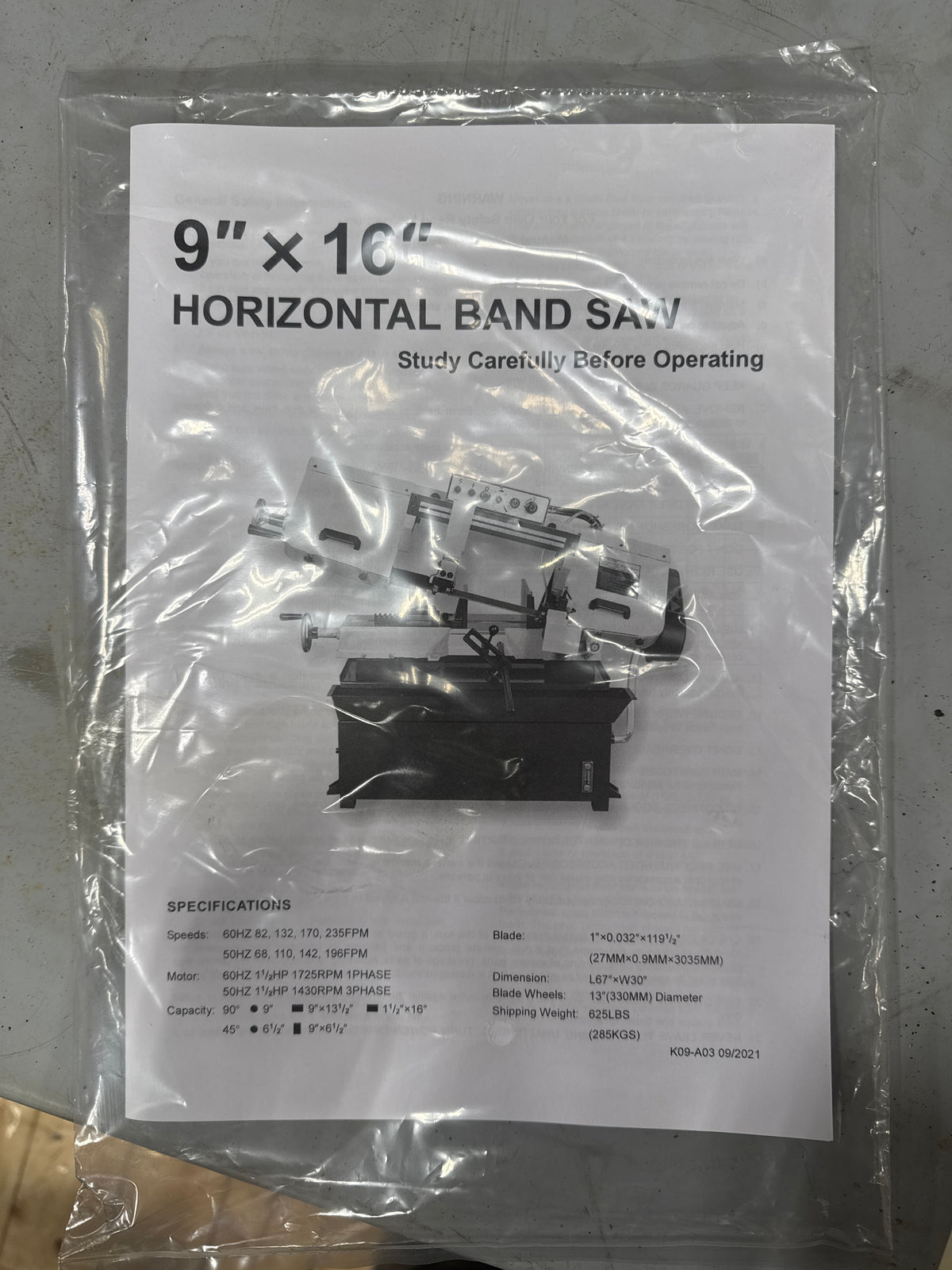 Model: 9×16 Horizontal Band Saw
