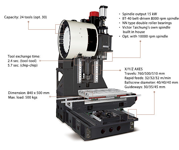 Tool Exchange Time: 2.4 sec (T-T), 5.7 sec (C-C)