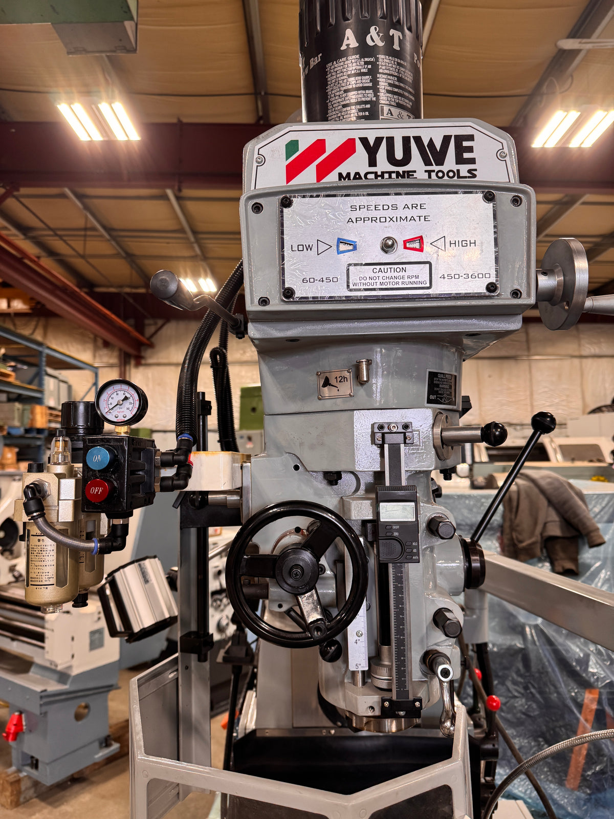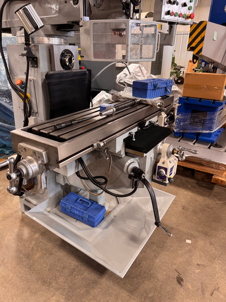The YUWE TM330H is a powerful horizontal and vertical milling machine engineered for precision and durability. Built in Taiwan, this 5HP dual-spindle mill features gearbox power feeds, automatic lubrication, 3-axis SINO DRO, and a 12”×54” worktable. Perfect for production, fabrication, and toolroom applications requiring accuracy and reliability in one machine.